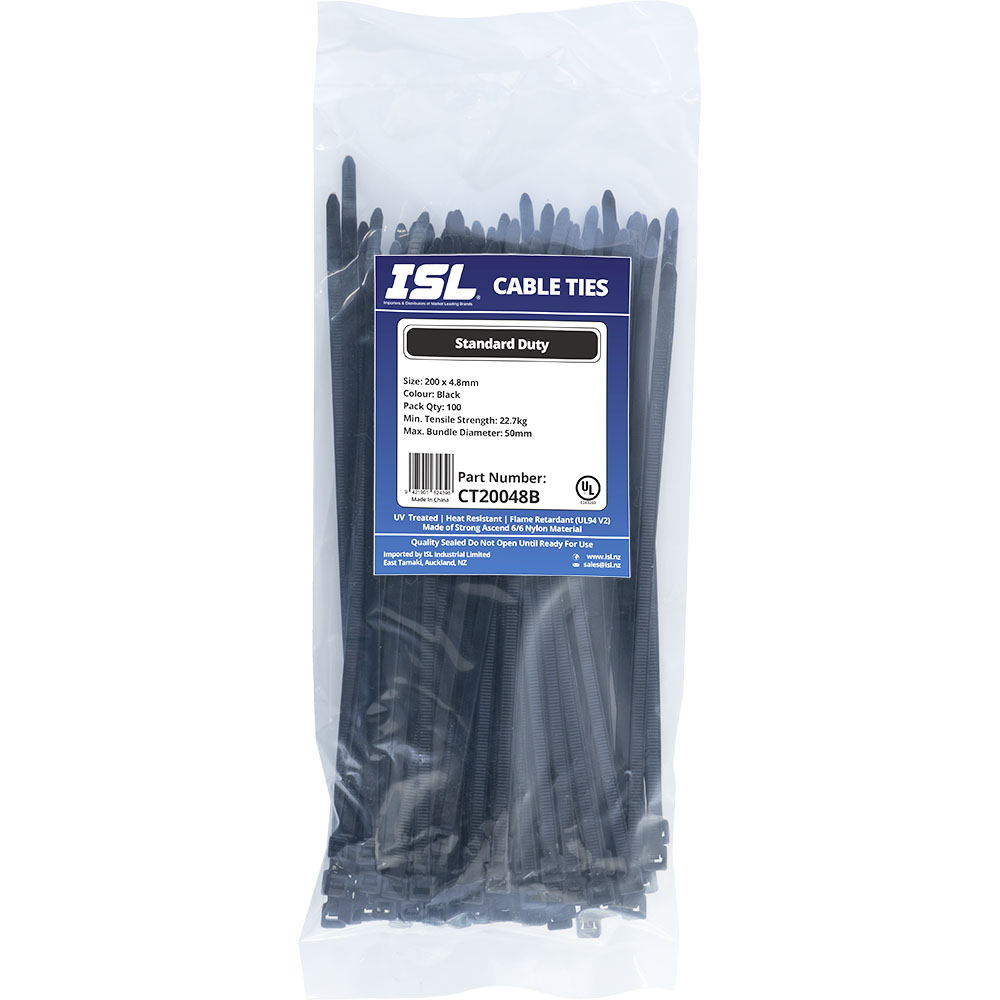 ISL 200 x 4.8mm UV Nylon Cable Tie – Blk. – 100pk