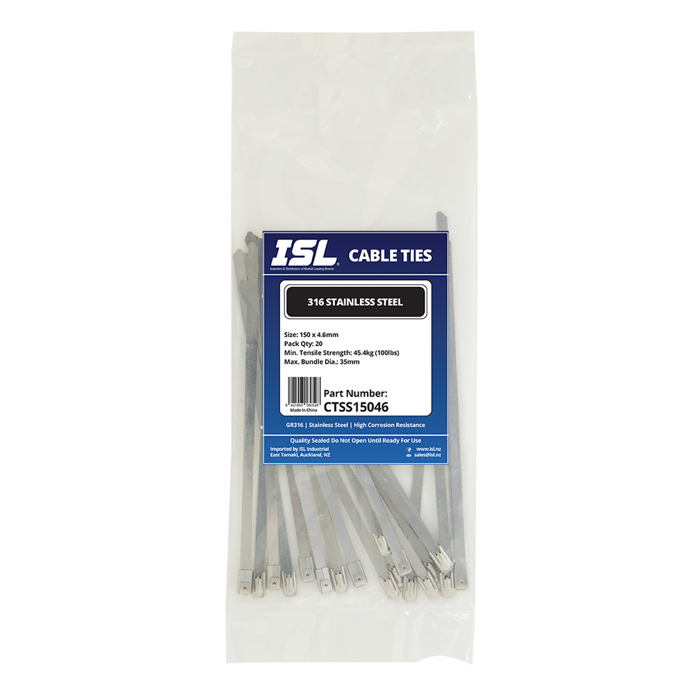 ISL 150 x 4.6mm 316 Stainless Cable Tie – 20pk