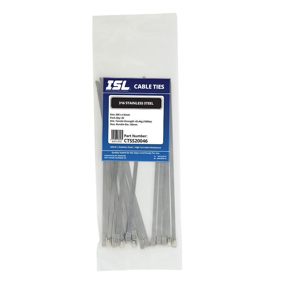 ISL 200 x 4.6mm 316 Stainless Cable Tie – 20pk