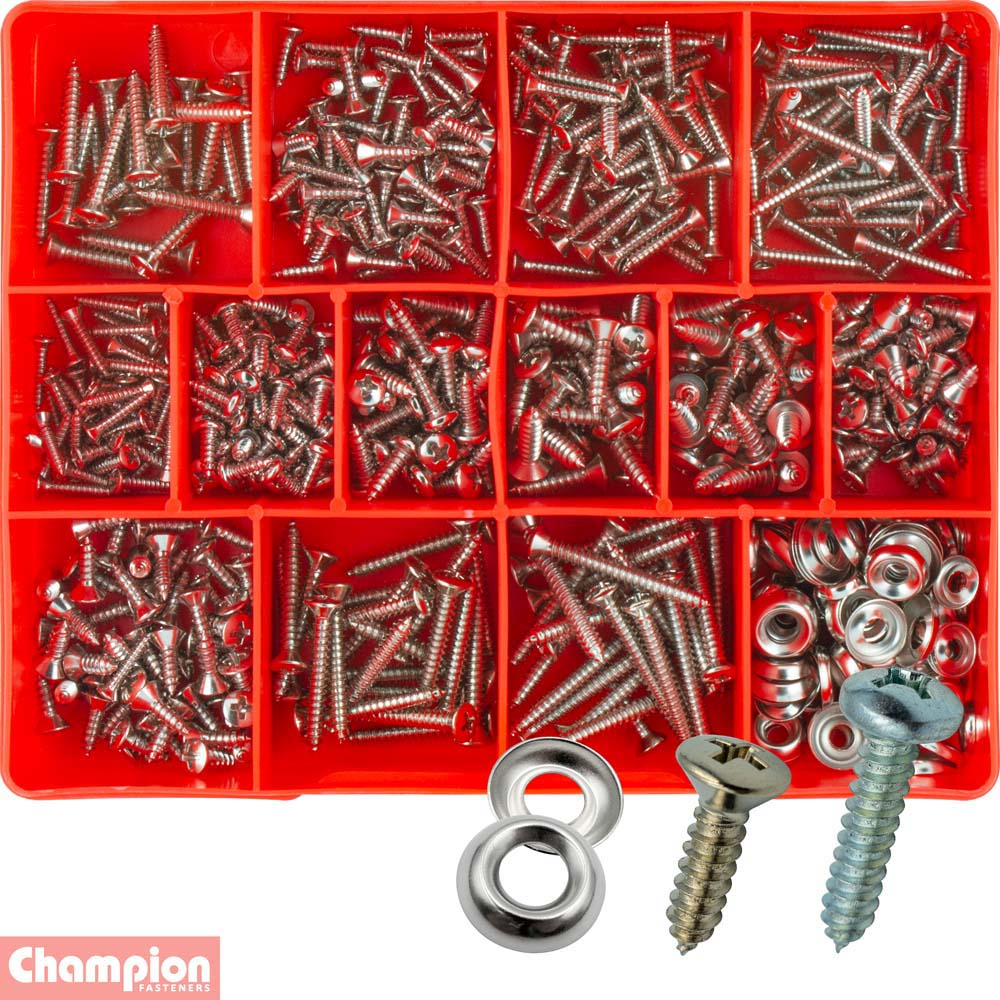 CA540 – 540PC SELF-TAPPING SCREW ASSORTMENT Pan and Raised Head Phillips Nickel Plated. 13 Sizes: 4G to 10G Lengths to 1-1/2 540 Pieces Replacement Packs Available Part # Size Pack Qty C540-1 4G x 5/8 Raised Head 40 C540-2 6G x 1/2 Raised Head 50 C540-3 6G x 1 Raised Head 40 C540-4 8G x 3/8 Raised Head 40 C540-5 6G x 3/4 Raised Head 40 C540-6 8G x 1/2 Raised Head 50 C540-7 8G x 1 Raised Head 20 C540-8 8G x 1-1/4 Raised Head 20 C540-9 8G x 1-1/2 Raised Head 20 C540-10 10G x 3/4 Raised Head 20 C540-11 6G x 3/8 Pan Head 50 C540-12 8G x 1/2 Pan Head 30 C540-13 10G x 1/2 Pan Head 20