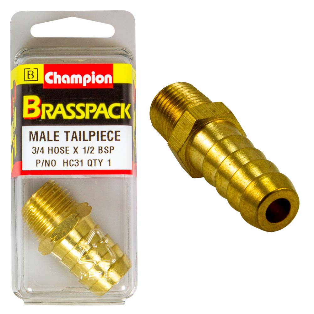 HC31|Champion Brass 3/4in x 1/2in Male Hose Barb Description Male Tail Peice 3/4 x 1/2 Pack Size: 1