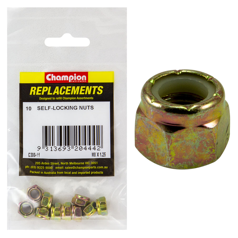 Champion M8 x 1.25 Nylon insert Self-Locking Nut -10pk