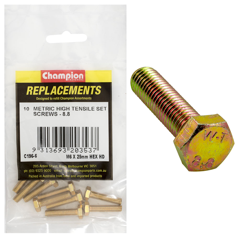 Champion M6 x 25mm x 1.00 Set Screw -Gr.8.8 -10pk