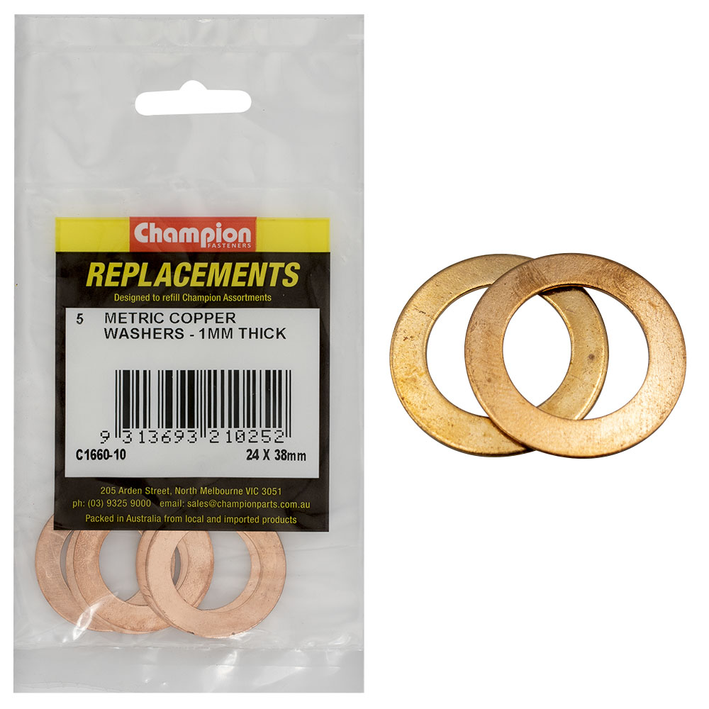 Champion M24 x 38mm x 1.0mm Copper Washer -5pk