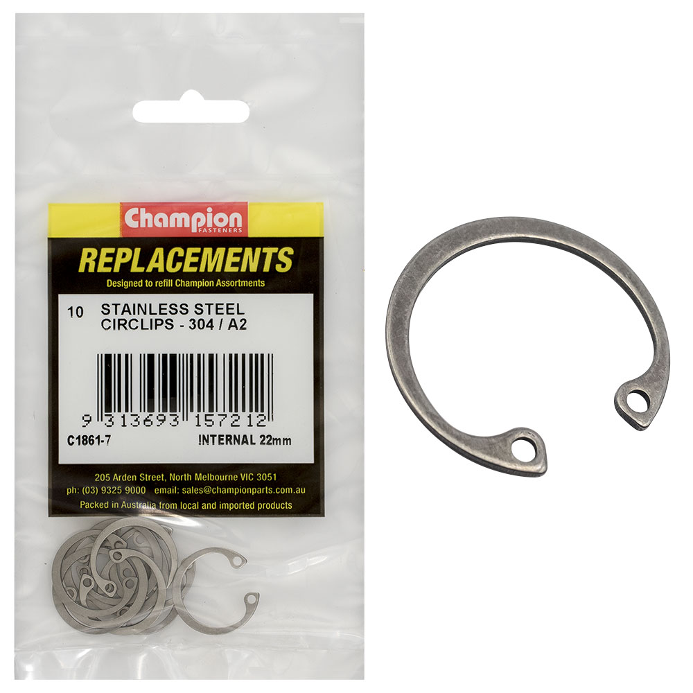 Champion 22mm Stainless internal Circlip 304/A2 -10pk