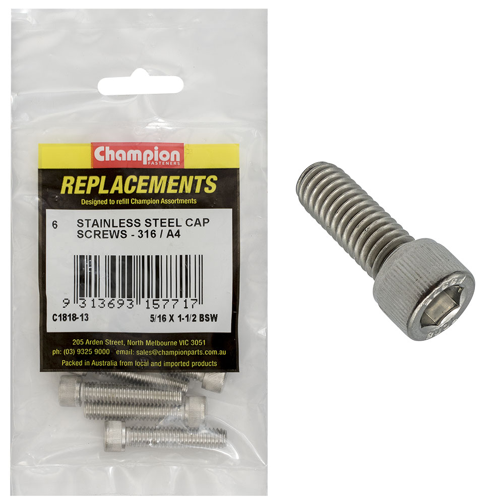 Champion 5/16in x 1-1/2in BSW Socket Cap Screw 316/A4 -6pk