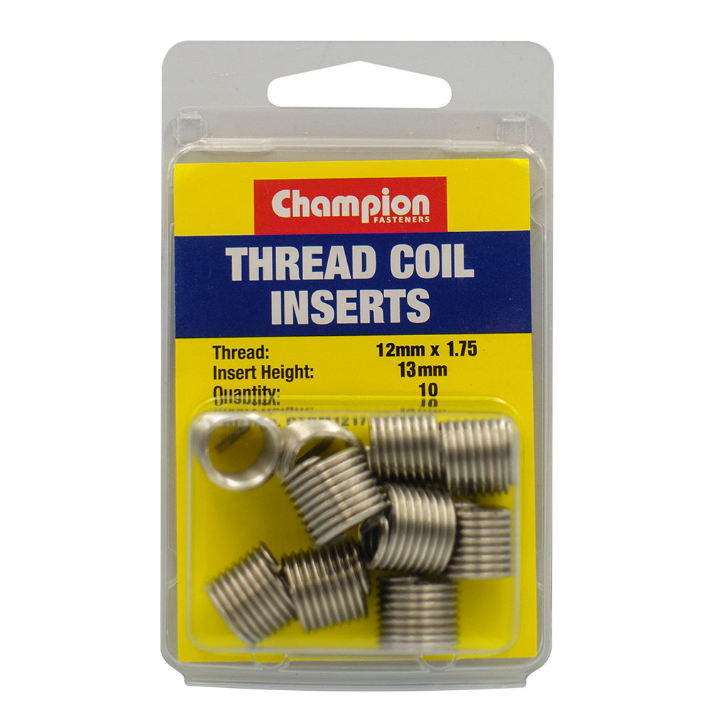 CTRM1217513 | Champion Thread Insert Refills M12 x 1.75 x 13mm Specifications Insert Size: 12mm x 1.75mm x 13mm 304 stainless steel Pack Size: 10