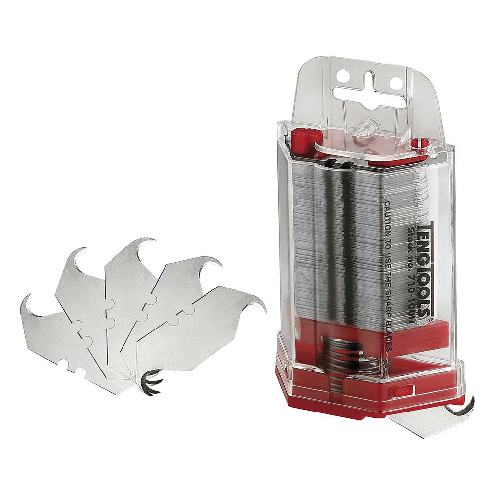 Hook/Horn Utility Knife Blade Quality hook / horn utility knife blades. Comes with spring loaded dispenser. To Suit Knifes 710 710N 711 & 712 710-100H: Quantity 100