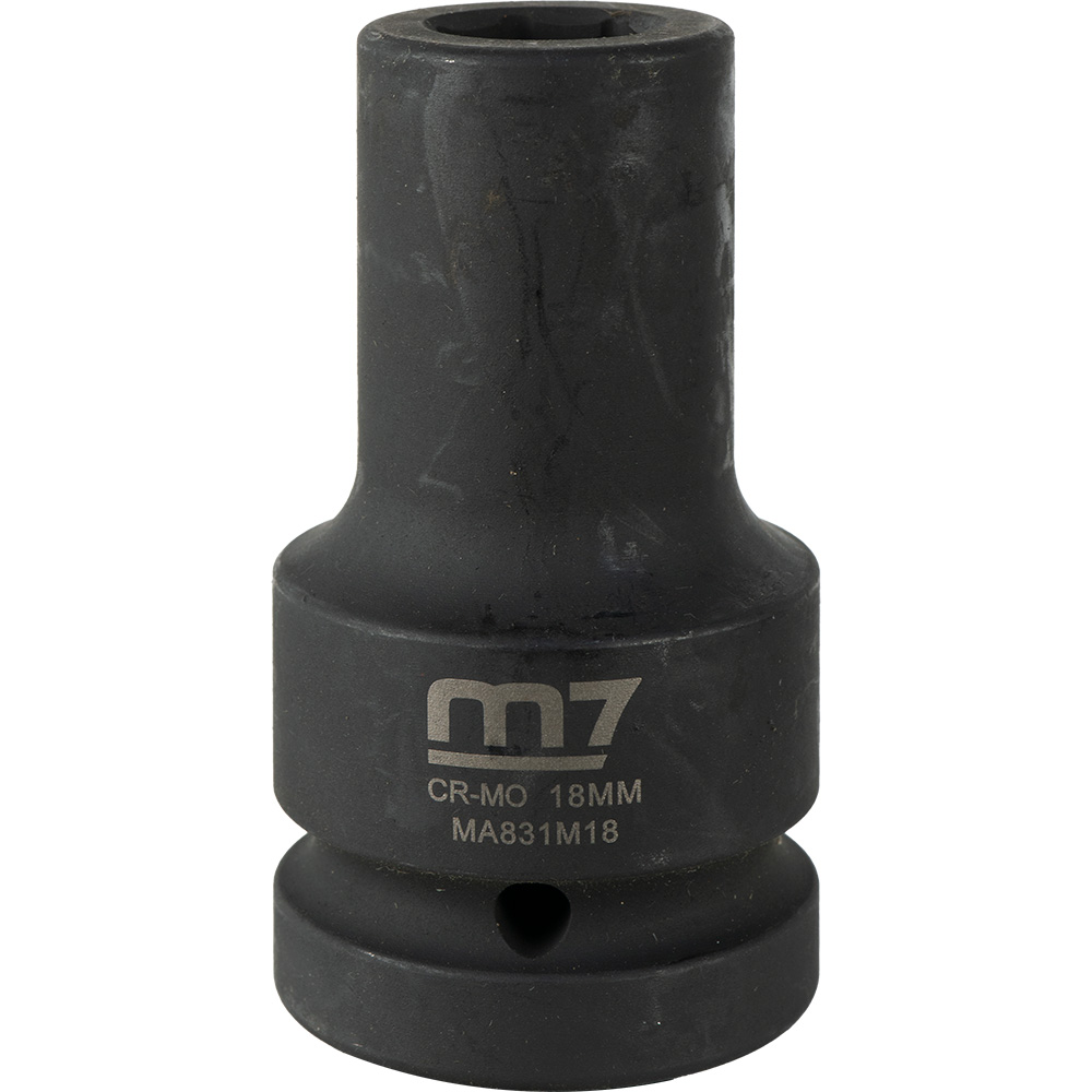 M7-MA831M18 | M7 Deep Impact Socket 1in Dr. 18mm Drive: 1 Diameter: 18mm Depth: 16mm Overall Length: 90mm