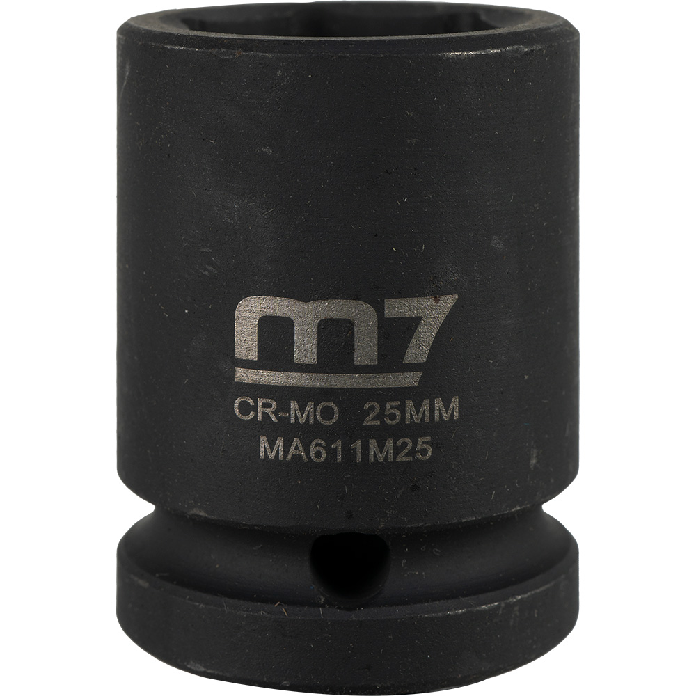 M7-MA611M25 | M7 Impact Socket 3/4in Dr. 25mm Specifications Drive: 3/4 Diameter: 25mm Depth: 14mm Overall Length: 52mm