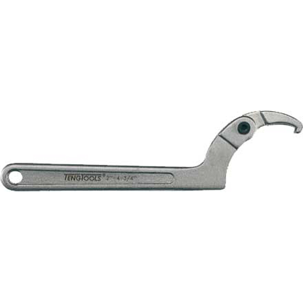 Hook Wrench Adjustable hook wrenches. With hook for locking nuts according to DIN 1804. Chrome Vanadium. Capacity: 19 to 50mm (3/4 to 2 inch) Overall Length (closed): 145mm (5-3/4 inch) Spare Parts Available: Screw Set Pivot Pin: SC-HPS