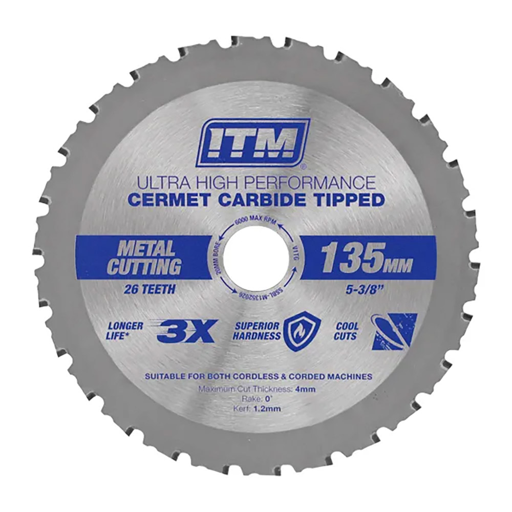ITM 135mm Metal Cutting Blade Cermet Carbide Tipped 26T