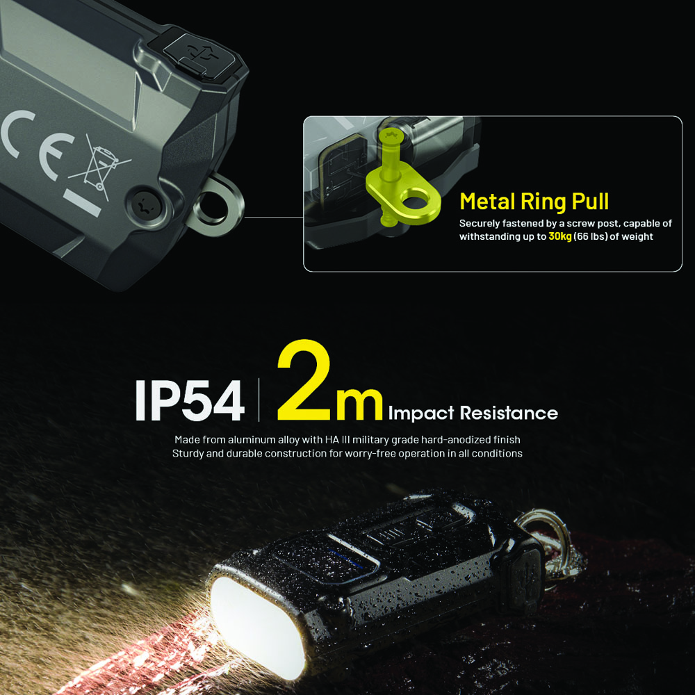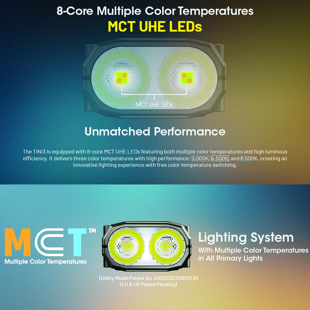Thanks to the MCT UHE LEDs featuring three color temperatures and jigh luminous efficiency and a larger 330mAh built-in battery, the TINI3 significantly increase the duration of every brightness levels, achieving a major breakthrough in runtime.