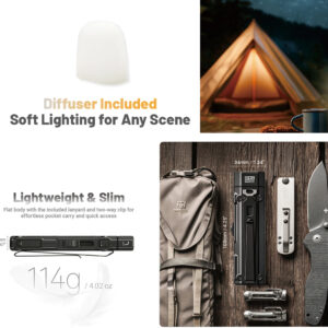 Paired with the diffuser, it delivers comfortable, glare-free close-range lighting and turns into a camping ambient light.
