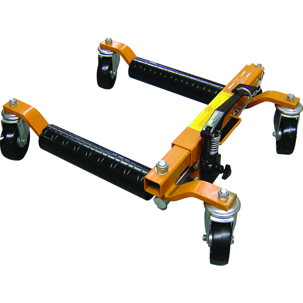 PE1121 Hydraulic Go-Jacks (pair) Hydraulic vehicle positioning jacks for use on cars vans utes and light trucks with tyres up to 12in / 305mm wide. Easily lifts vehicles without touching chassis or body. 2 jacks permit full 180° vehicle pivot 4 jacks place allows for 360° movement. Sold per pair. Specifications: 680kg / 1500lb capacity (per jack) Professional Quality Steel construction with metal rollers Max Tyre Width: 12in / 305mm Min/Max length: 350 – 640mm Quality 100mm swivel castors Net Weight: 46kg (pair) WARNING: GO-JACKS MUST BE USED ONLY ON HARD LEVEL SURFACES. *12 Month Limited Warranty against faulty materials and manufacture defects only*